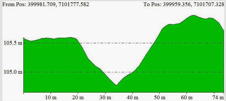 Scours of a typical depth of about 0.7 m and a width of 30-60 m. Also, more than 100 m wide and more than a meter deep strokes occur. As well as the very narrow and shallow. The length is often the order of kilometers. Seen from above, they tend to pass the time in a straight line, some may make a sharp-edged changes of direction, some curved.